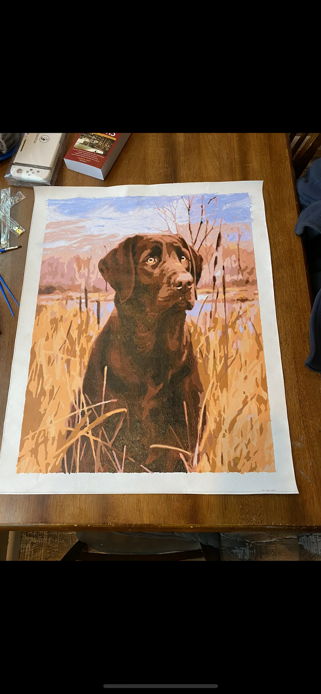 Full kit of paint by numbers with rolled canvas (no fold).