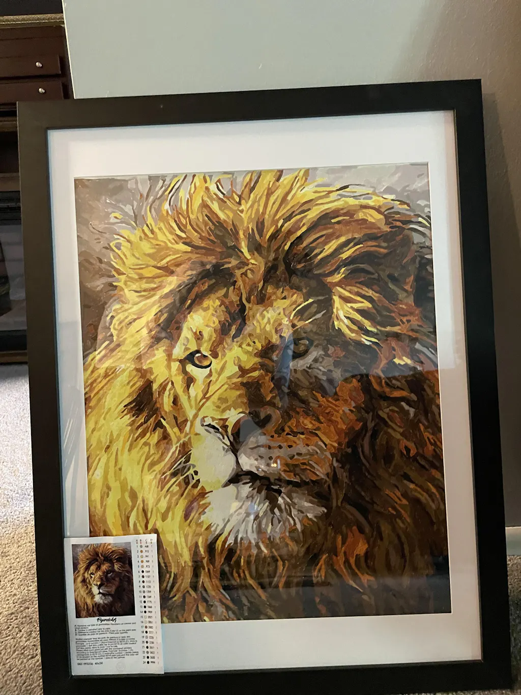 Full kit of paint by numbers with rolled canvas (no fold) and a do-it-yourself wooden frame.