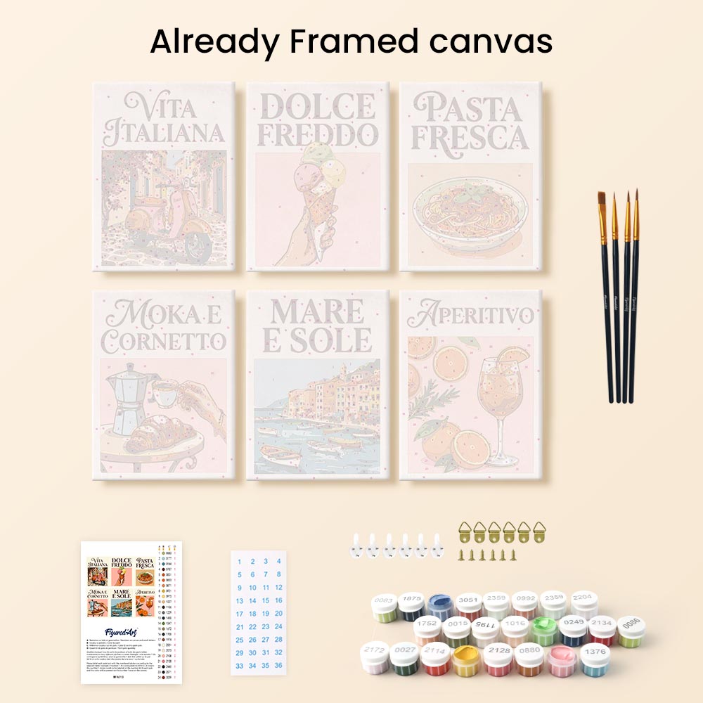 Mini Paint by numbers 6"x8" (6 pieces) - Dolce Vita