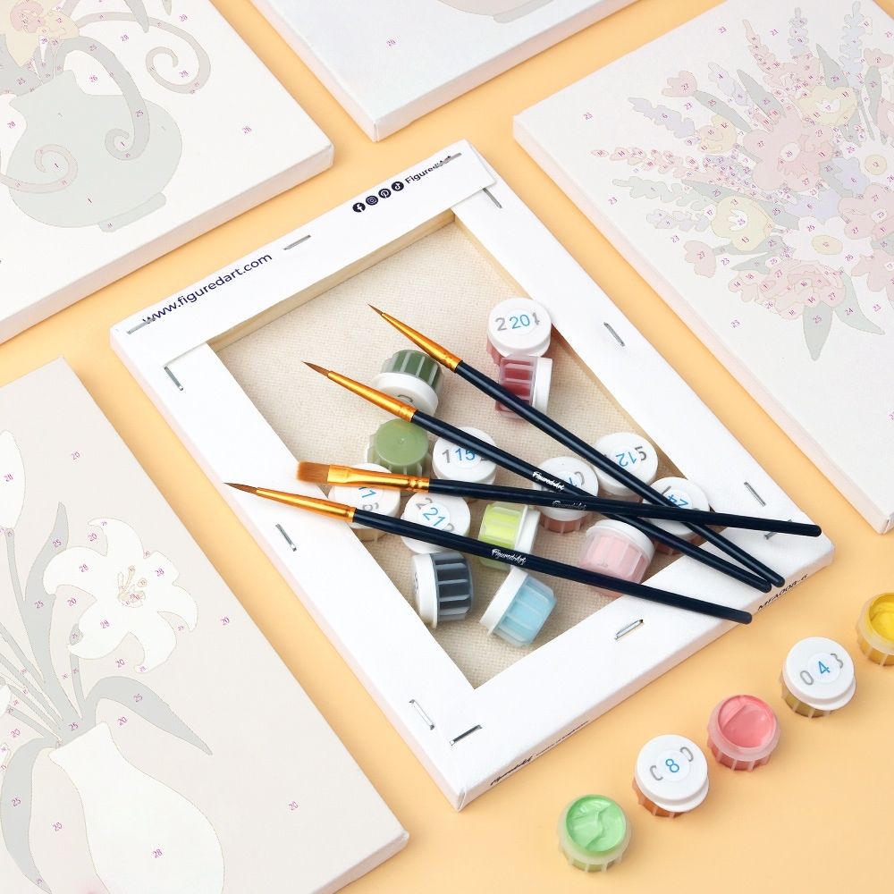 Unleash your creativity with the best paint by numbers for adults, this Figured'Art set includes six 6"x8" linen canvases. This relaxing and guided painting by numbers experience is accessible to everyone, perfect to express your artistic side, decorate your home, or gift a creative moment to someone special.
