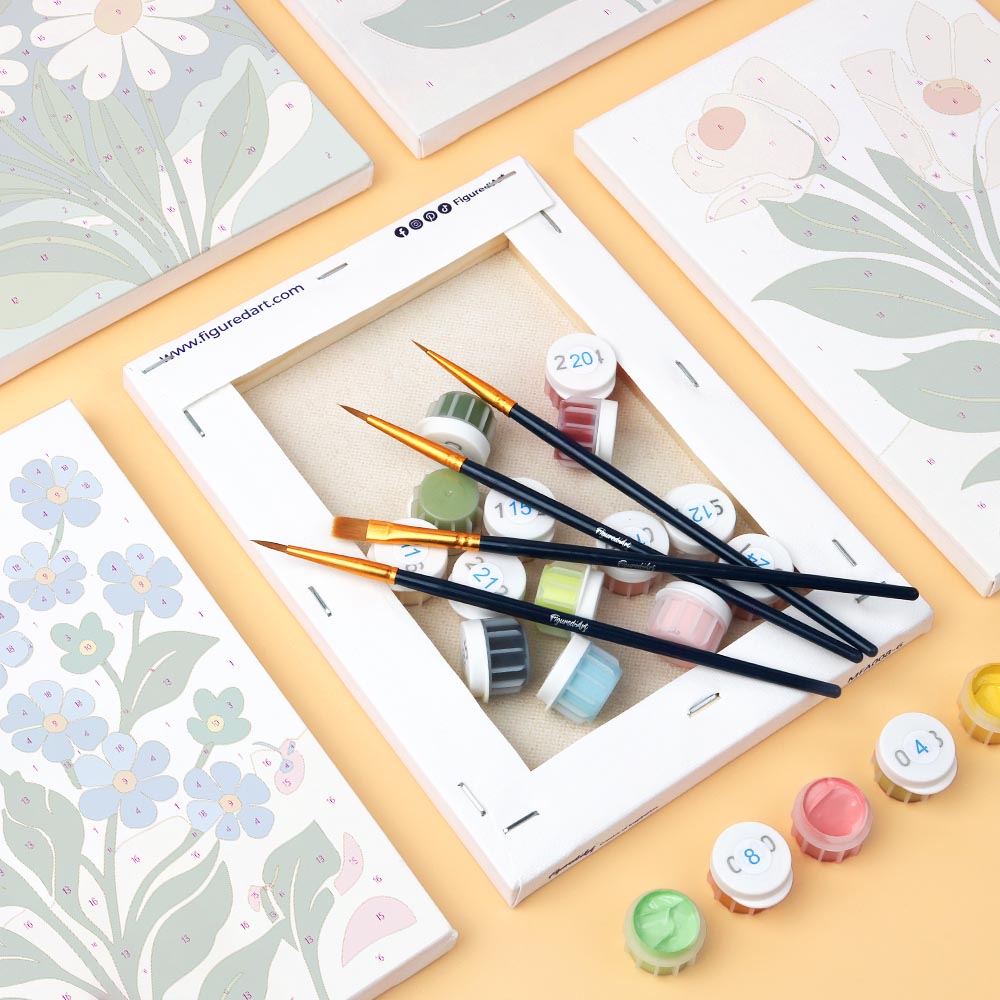 Unleash your creativity with the Figured'Art Mini Paint by Numbers Set, featuring small numbered linen canvases. This relaxing and guided painting by numbers experience is accessible to everyone, perfect to express your artistic side, decorate your home, or gift a creative moment to someone special.