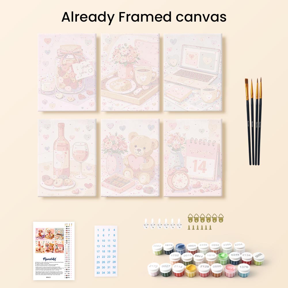 Mini Paint by numbers 6"x8" (6 pieces) - Valentine's Day