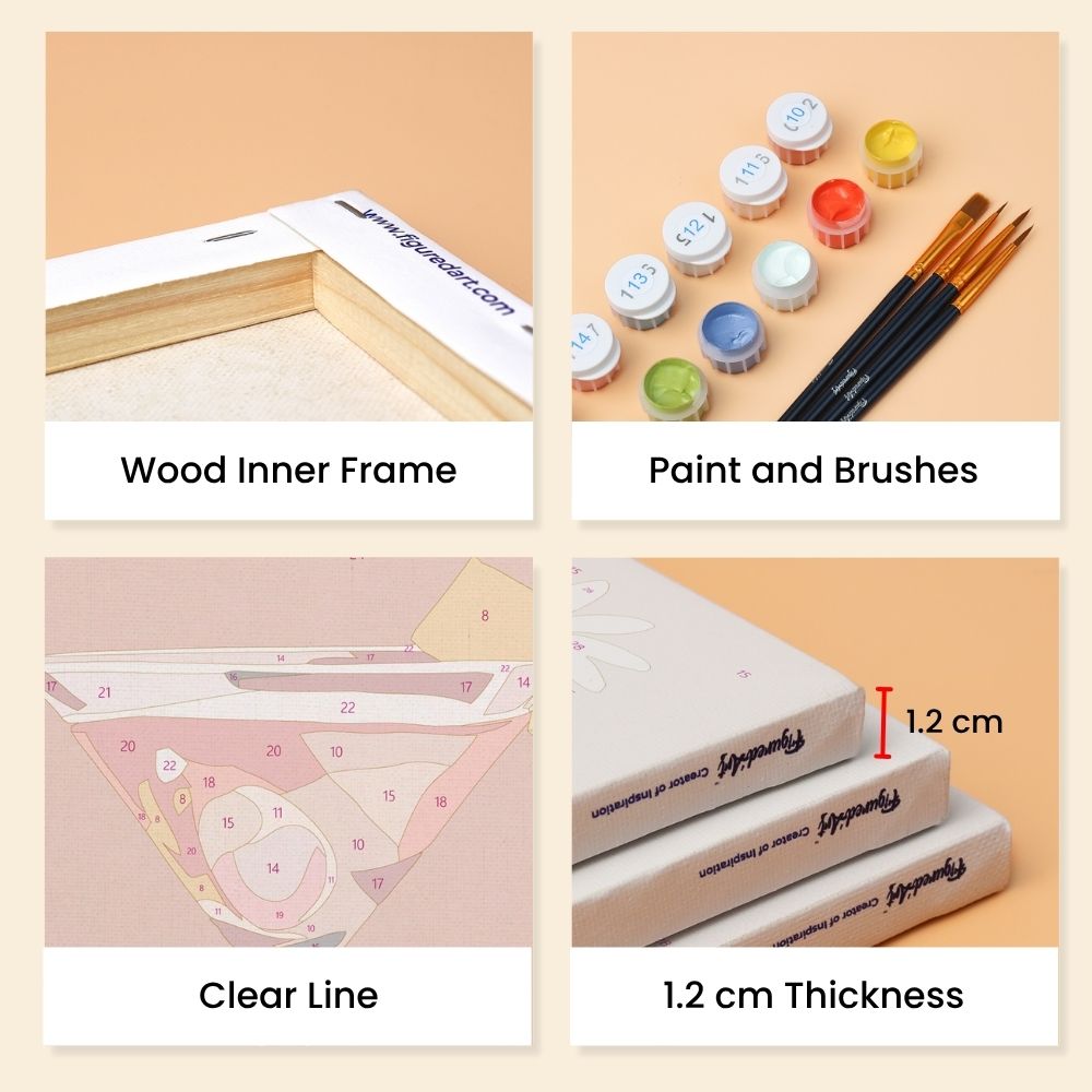 Unleash your creativity with the best paint by numbers for adults, this Figured'Art set includes six 6"x8" linen canvases. This relaxing and guided painting by numbers experience is accessible to everyone, perfect to express your artistic side, decorate your home, or gift a creative moment to someone special.
