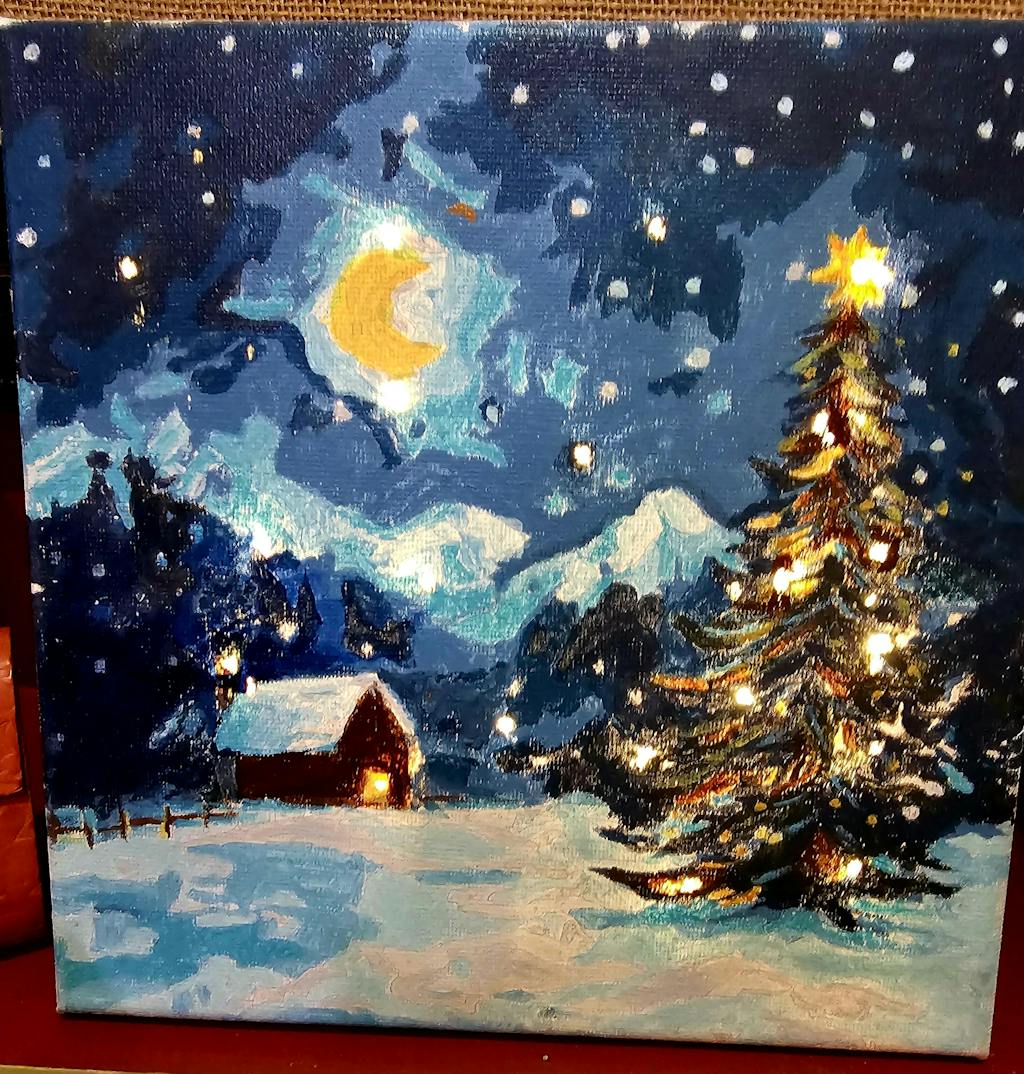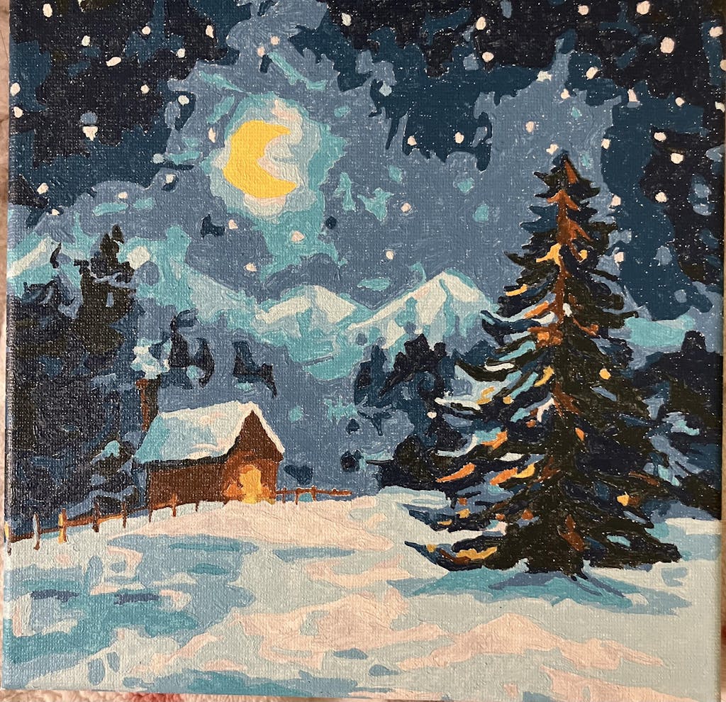 Model: Mini Paint by numbers 8"x8" framed - Starry Christmas Night