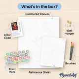 This paint by numbers kit contains all the necessary materials to create your artwork: