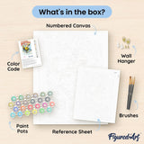 This paint by numbers kit contains all the necessary materials to create your artwork: