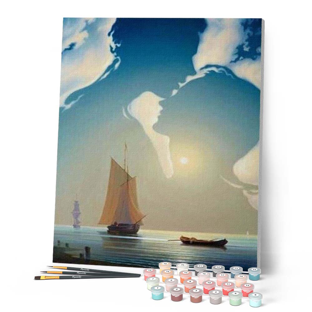 2) You will receive a ready-to-use kit containing the canvas with the numbered areas, the numbered pots of paints, paint brushes and a picture of the expected result to guide you. Let the journey begin!