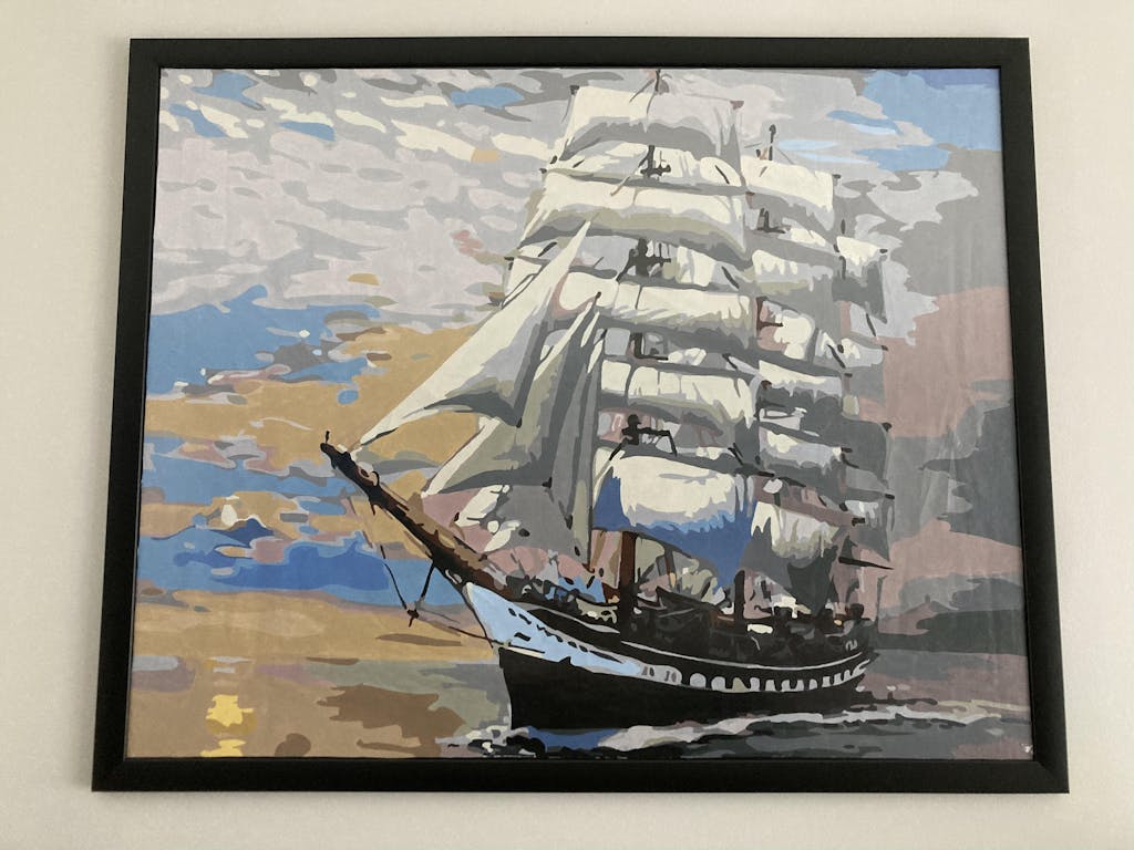 Full kit of paint by numbers with rolled canvas (no fold) and a do-it-yourself wooden frame.
