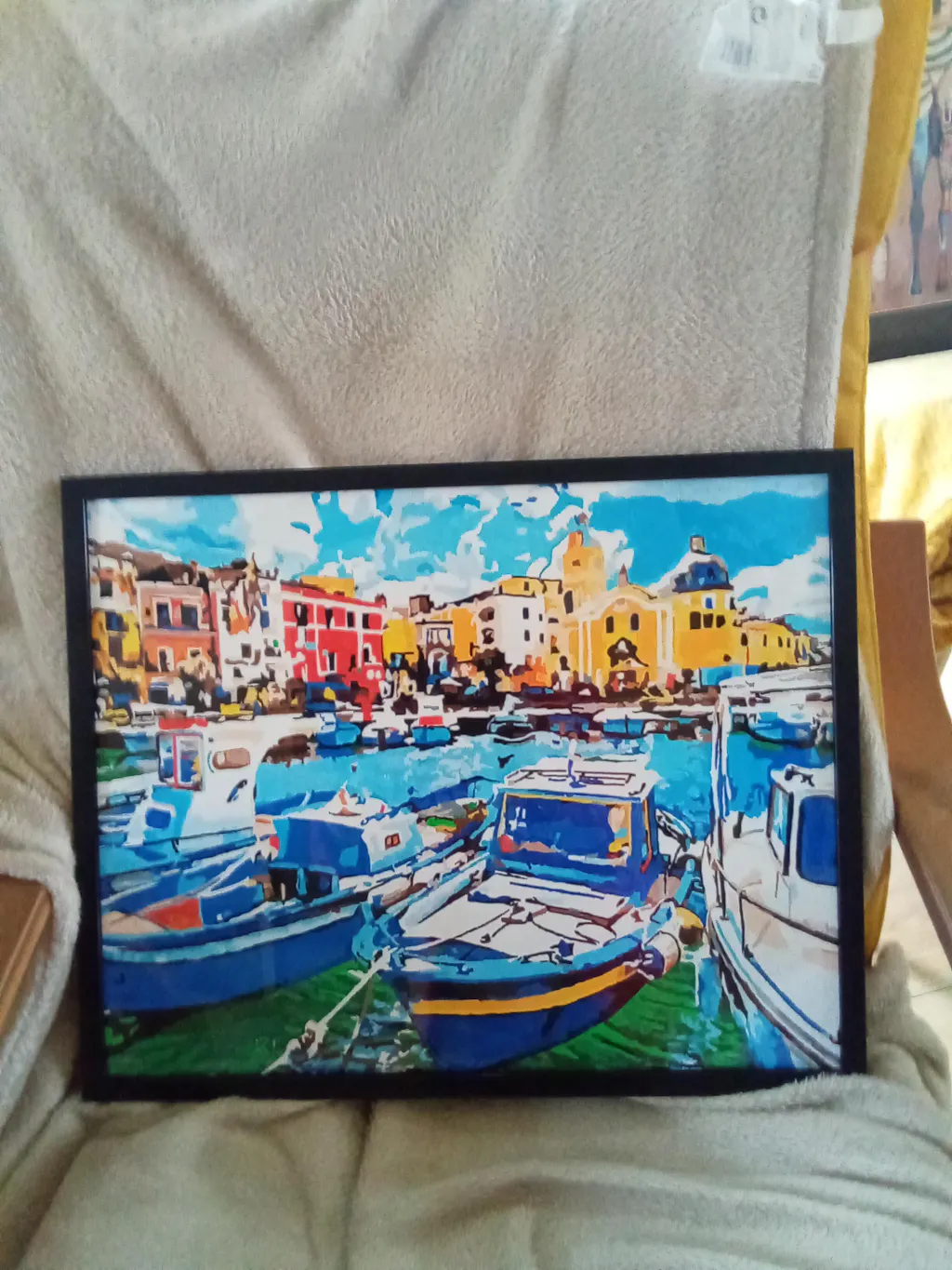 Full kit of paint by numbers with rolled canvas (no fold) and a do-it-yourself wooden frame.