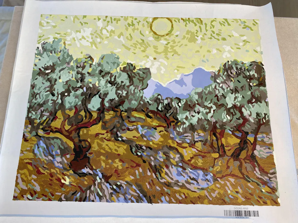 Full kit of paint by numbers with rolled canvas (no fold) and a do-it-yourself wooden frame.